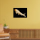 This simple, elegant poster features a delicately coloured orange and white koi fish swimming against a pure black background.