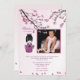 An adorable invitation featuring a Japanese doll with blooming tree branches cascading over the photo window. Perfect for any little girl's party!