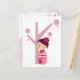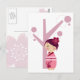 Kokeshi doll wearing a pink kimono with cherry blossom details, standing in front of a tree. Cherry blossom is an omen of good fortune and is also an emblem of love, affection and represents spring.