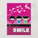 Cute and colorfull postcard, with kokeshi (japanese dolls) on pink background and cherry flowers