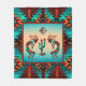 This is a Unique "One of a Kind" Southwest Kokopelli Sherpa Blanket! It Features Two Southwest Kokopelli Playing the Flute and Dancing Around a Cactus Under the Sun on a Turquoise and Orange Sunset Background...Surrounded by a Southwest Border in Turquoise, Orange & Black