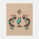 This is a Unique "One of a Kind" Southwest Kokopelli Fleece Blanket! It Features Two Southwest Kokopelli Playing the Flute and Dancing Around a Cactus Under the Sun on a...Tan Background!