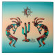 Brighten Your Home with this Unique "One of a Kind "Southwest Kokopelli Ceramic Tile! It Features Two Kokopelli Playing the Flute and Dancing Around a Cactus Under the Sun...on a Turquoise and Orange Sunset Background!