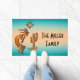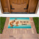 Personalise this Unique "One of a Kind" Southwest Kokopelli Doormat! It Features a Copper Southwest Kokopelli Playing the Flute and Dancing Around a Cactus Under the Sun...on a Turquoise and Orange Sunset Background!