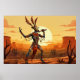 Kokopelli Dancing Playing Flute On Desert Plateau Poster