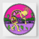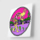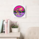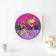 Kokopelli Flute Player Southwestern Clock in Pink, purple, green, blue, yellow and black