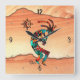 This is a Unique "One of a Kind" Southwest Kokopelli Square Wall Clock! It Features a Kokopelli in Turquoise, Orange and Black Playing the Flute and Dancing Under the Sun in the Desert!