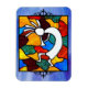3” x 4” flex-style magnet with a stained glass image of the deity Kokopelli. Kokopelli is a fertility deity, usually depicted as a humpbacked flute player (often with feathers or antenna-like protrusions on his head), who has been venerated by some Native American cultures in the Southwestern United States. Like most fertility deities, Kokopelli presides over both childbirth and agriculture. He is also a trickster god and represents the spirit of music. See matching square magnet. See the entire Arizona Magnet collection in the HOME section.