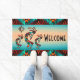 Personalise this Unique "One of a Kind" Southwest Kokopelli Doormat! It Features a Three Kokopelli Playing the Flute and Dancing Under the Sun on a Turquoise and Orange Sunset Background...Surrounded by a Southwest Border in Turquoise, Orange and Black!