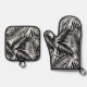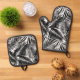 Kona Palms Hawaiian Tropical Leaf Black Oven Mitt & Pot Holder Set