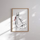 Korean Hanbok Woman with Red Ribbon Ink Poster