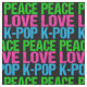 Peace Love K-Pop. A cool neon pink, green, and blue Kpop fabric for a fan of hot Korean pop music. Fun and cute.