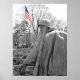 This poster features a black and white photograph of the Korean War Veterans Memorial in Washington, D.C., highlighted by a full-colour American Flag.