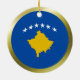 Both sides of this ornament feature the flag of Kosovo morphed into a circle with a golden rim. Simple Kosovar decoration for your home.