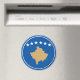 The flag of the Republic of Kosovo was adopted by the Assembly of Kosovo immediately following the declaration of independence of the Republic of Kosovo from Serbia on 17 February 2008. The flag is the result of an international design competition, organised by the United Nations-backed Kosovo Unity Team, which attracted almost one thousand entries.The now-used design is a variant of one proposal designed by Muhamer Ibrahimi. It shows six white stars in an arc above a golden map of Kosovo on a blue field. They symbolise Kosovo's six major ethnic groups.