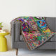 A quality printed throw has its advantages. This is a much finer weave throw than its loopier cousins, and though lighter, it is worth the investment for custom room accessorizing. The back is much prettier than the typical brown, and the fringe on the long sides very vivid, the selvage nicely done. Before photographing, I washed the throw in cold water, delicate, with a thicker woven throw the same size. On tumble dry low, this throw was dry in half the time as the other. This is a very practical quality if you use throws for furniture covers or to wrap up in frequently. The sleekness of the fabric makes it a great layer for accenting or protecting without the feeling of sitting on too much stuff. Perfect for napping or when you feel a light chill coming on. The color printing is beautiful and on this fabric, matched the design and color of my Photoshop image. This is an advantage for blending room fabrics and colors. The fringe on the short sides prints the colors from the design image and therefore varies from the side fringe. I streaked a white fractal line through the plaid pattern to give the illusion of weaving. This printed as crisp as an illusory thread, and put some white in the short side fringe, showing another advantage of print vs loomed- for artistic purposes, line lines, detail, and color integrity can be planned and preserved. My loomed throws have color limitations and more of a needlepoint texture. Print throws reproduce an exact image. The throw felt a little stiff straight out of the package, but this went away in the first delicate wash. Of course I searched the wash water for ink or bleeding and there was none.
