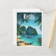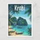 Krabi Thailand Vintage Art Travel Illustration Postcard