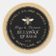 This apiary product label is fully editable. Personalise with your apiary name, location, product description and container size. Black circle on a kraft background and brown text. Heraldic honey bee illustration is a vintage mediaeval design.