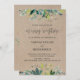 This kraft foliage with monogram backing evening reception invitation card is perfect for a rustic wedding. The design features a frame of green leaves and leafy greenery botanicals on a faux kraft paper background. The backing features a matching country wreath which can be personalised with the couples monogram.