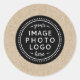 Business logo stickers with a printed image Kraft paper look border and your logo over a black circle. Move and resize the logo with the design tool.