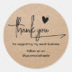 kraft Minimalist Custom heart thank you Business Classic Round Sticker