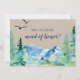 This kraft mountain will you be my maid of honour card is perfect for an outdoor wedding. The design features a blue and green painted wilderness landscape with watercolor pine trees, birds and mountains on a faux light kraft paper background. Customise the card with the name of the bride and the bridesmaid. Personalise the back of the card with a personalised message.