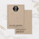 This earring display card features a simple black and white design. It depicts a pinstripe black border, a place to add your logo, and matching modern typography on top of a sandy beige kraft paper background. On the back, it includes contact information that can be changed completely or personalised to your details. It's a professional, elegant, and stylish way to display your product with pride. (earring holes are printed markers only, puncturing must be completed by the customer)