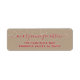 A kraft paper return address label sticker with black handwriting with a light snow covering.