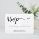 While working with a client who preferred to only receive RSVPs electronically, she requested an RSVP card that specified the number of guests and had her contact information. This version skips the step of needing to mail back the card and providing a return self-addressed envelope and stamp. An environmentally friendly RSVP option. Personalise this for your wedding with your wedding website details or customise as needed with an email address or phone number.