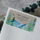 These kraft Rocky Mountain return address labels are perfect for an outdoor wedding. The design features a blue and green painted wilderness landscape with watercolor pine trees, birds and mountains on a faux light kraft paper background. These labels can be used for a wedding, bridal shower, special event or any time you need a personal address label.