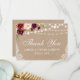 Kraft Rustic Wedding Watercolor Burgundy Marsala Floral String Lights Lace Thank You Card
