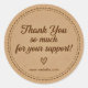 Rustic, warm, and brand-friendly — this editable thank you business sticker pairs a kraft-paper backdrop with stitched borders, a heart accent, and the message “Thank You so much for your support!” plus a customizable website URL. Personalize to match your identity: add your logo, tweak fonts and colors, and switch the note to thank you for your order or thank you for your business — perfect for small business owners elevating online shop packaging, handmade business packaging, and ecommerce packaging.