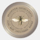Vintage honeybee illustration in muted colours on a kraft background. Your apiary name is written in a classy, old-fashioned openface font. Metallic gradient border.