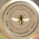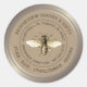Vintage honeybee illustration in muted colours on a gradient background. Your apiary name is written in a classy, old-fashioned openface font. Embossed-style border.