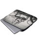 The sleeve is made of nice feeling material and seems very durable. I'm not sure how easy it'll be to clean, but the construction seems sound and the fabric is quick thick. I also like the double zipper. The printing is lovely and appears durable. The white on black contrast is nice, and the design very elegant.