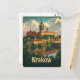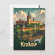 A charming and nostalgic depiction of Krakow, Poland, showcasing its rich historical and architectural heritage. The design features the city's iconic landmarks such as Wawel Castle, St. Mary's Basilica, and the bustling Market Square, all illustrated in a vintage style. This artwork captures the timeless beauty and cultural richness of Krakow, inviting viewers to explore its storied past and vibrant present.