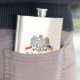 The product is a good size and came exactly as it was pictured.  The lid is not attached to the flask, which could be dangerous on drunken nights... The print came out surprisingly well and looks very sharp.  Would definitely recommend.