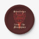 Perfect for your Krampusnacht celebrations, paper plates emblazoned with his festive face and "Greetings from the Krampus"