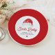 This "Santa Baby" baby shower paper plate features a watercolor Santa hat and a cute modern retry inspired font. This baby shower dinner party plate is perfect for your Christmas, winter, or holiday themed event. Pair with anything in the KRIS Collection for a cohesive look.