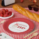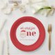 This "Oh what fun it is to be one" first birthday plate features a watercolor red Christmas ornament and a cute modern retry inspired font. This birthday paper plate is perfect for your Christmas, winter, or holiday themed event. Pair with anything in the KRIS Collection for a cohesive look.