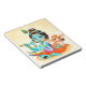 Krishna the Holy Indian God playing flute illustration sitting next to a cow with jasmine garlands, peacock feather and bird composed art.