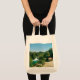 The printing came out very well, better than I had anticipated. The natural color fabric is sturdy with strong seams and comfortable handles. This tote fits easily over my shoulder. As it is filled, the bottom flattens out--very cool! I would buy this product again. This grocery tote holds a lot of groceries! The image quality was very good. The colors were a little darker than I had expected. The darkness may have been due to printing on a natural color fabric rather than on white. The cat design is attractively centered on the tote. The spirit of the design is very lively, just as it appears on the Zazzle website.
