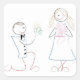KRW Cute Bride and Groom Stick Figure Square Sticker