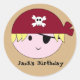 KRW Cute Custom Pirate Birthday Stickers.  Great for sealing envelopes on our matching Pink Pirate Birthday Invitations and Thank You Cards.  Great favours for goodie bags or pinatas.