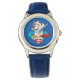 The blue band is the right color for a boys watch.  My grandson loves lacrosse and the watch is easy to put on.  He is ten years old. The lacrosse picture is very clear and I like the blue hands on the watch.  It's good for teaching time.