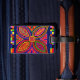 Mola tribal folk art flowers, navy red yellow green turquoise, faux quilt, graphic design, contemporary folk art, ethnic art, indie art, bohemian, panama folk art, mola folk art, tribal folk art.