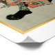 This vintage Japanese art poster features the woodblock print depicting samurai hero Imagawa Yoshimoto from Kuniyoshi’s series Taiheiki Eiyuden or “Heroes of the Great Peace” (1846-47). One of the last great names in the Japanese ukiyo-e style, ukiyo-e artist Utagawa Kuniyoshi was an undisputed master of the warrior woodblock print. Born in Tokyo in 1797, he became an apprentice to a famous print master at the age of 12.