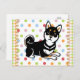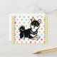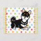 Whimsy and funny Shiba Inu Cartoon created by Naomi Ochiai from Japan. Great fun gifts for dog lovers who love Kuro Shiba dogs. A serious and adorable looking Kuroshiba puppy is looking up at his/her human family... Polka dot and gingham plaid pattern with tiny paw prints.