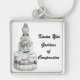 Large square premium metal keychain with an image of a Porcelain statue of Kwan Yin, the Buddhist Goddess of compassion, and a description of her on white. See the entire Goddess Keychain collection in the PARTY FAVORS section.