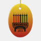 Personalise this Kwanzaa holiday ornament with your own text on both front and back. Image design of seven candles in traditional red,green and black on a soft yellow and orange gradient background.. Part of a collection of coordinating items in this same design at Monograms and Monikers on Zazzle.